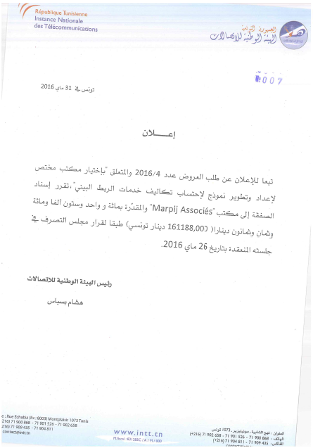 إعلان نتائج طلب العروض عـ4ـدد لسنة 2016